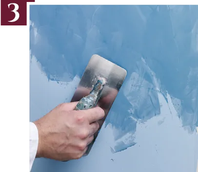 Once the first coat is almost dry, apply touches of product with trowel or spatula until covering the entire surface.