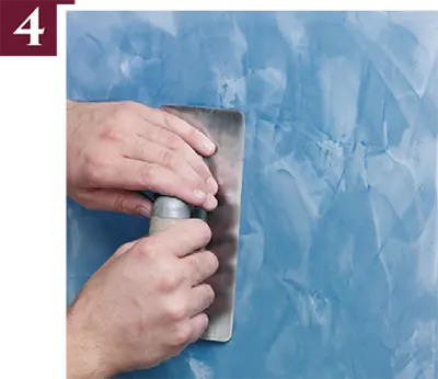 To finish, polish before complete drying with trowel or stainless steel spatula to enhance all its splendour, offering high gloss and extraordinary surface hardness.